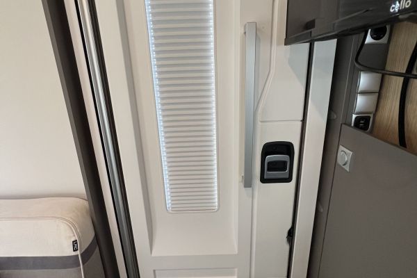 Im hinteren Bereich erwarten Sie ein gemütliches Bett (200 x 132-89 cm) und ein clever durchdachtes Bad, das durch eine Trennwand Dusche, Toilette und Waschtisch optimal voneinander abgrenzt.